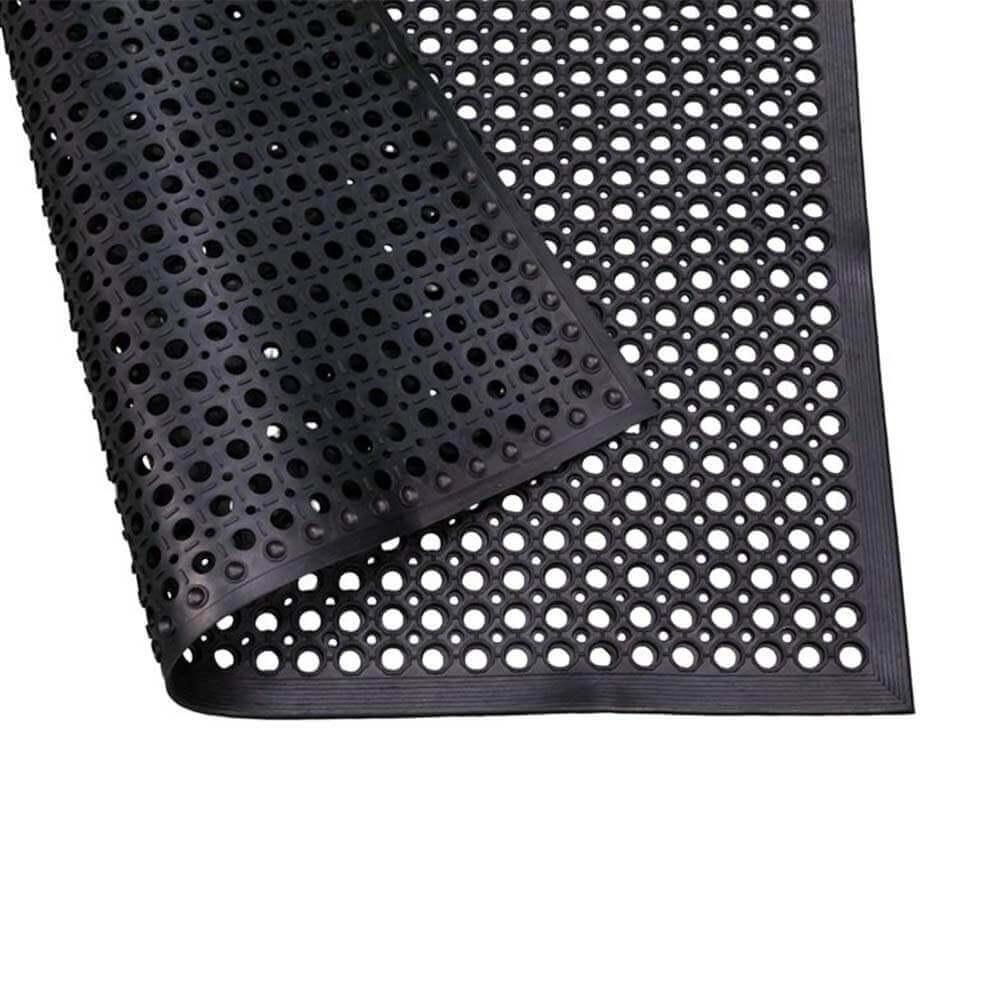 Our FLEXGARD® beveled ring mat can be used effectively in most industrial, workplace, and animal areas. The resilient design reduces fatigue and increases safety, keeping you more alert and less prone to accidents. The large drainage holes in the mat help maintain a clean, effective, non-slip surface for improved traction. These mats are suitable for wet and dry conditions and are designed to resist chemical damage.