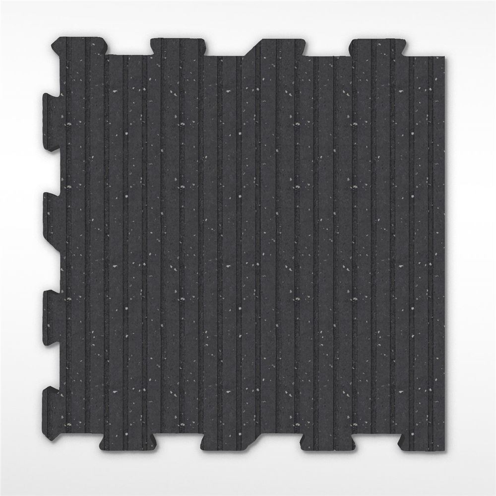 Our line of Flexgard® Interlocking Rubber Gym Mats are made from premium rubber, and offer the highest quality flooring for gyms. For use in both professional and home gyms, these rubber mats are perfect for use in weight rooms, equipment rooms, or any other place where fitness activities take place. The high quality rubber surface provides an anti-slip platform, while also offering anti-fatigue properties for extended use. These interlocking mats are durable and will last through extended use, making it the perfect solution for any gym flooring needs. Flexgard® Interlocking Gym Mats are made with interlocking edges to allow custom configuration for any size floor.