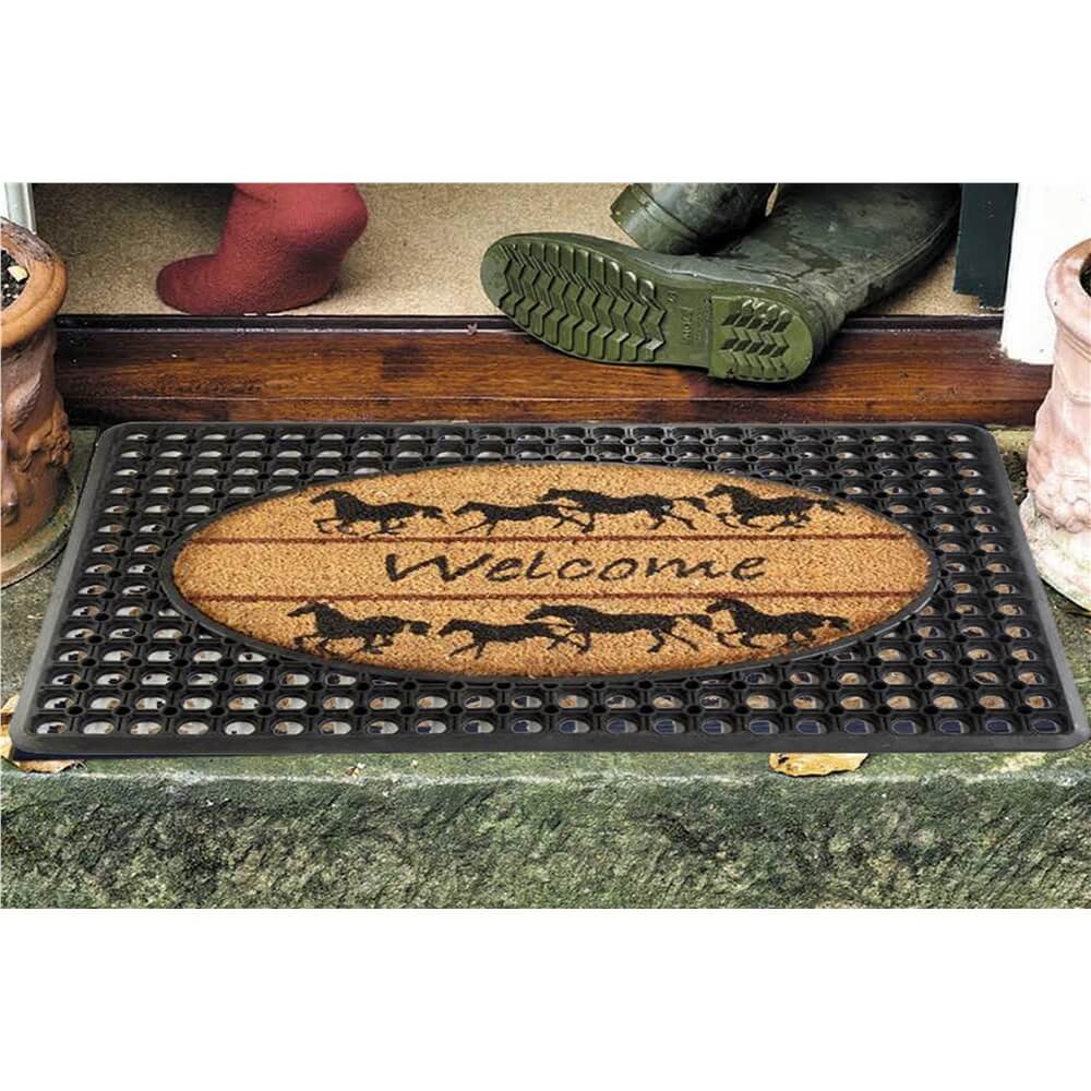 Personalize any entry way with Aspinwall Entrance Mats. These mats are made from natural coir and rubber for maximum durability and heavy-duty applications. The natural coir fiber increases foot traction and traps dirt and grime, keeping interiors tidy. To clean, vacuum or rigorously shake mats. Use in dry, covered areas and keep away from standing water to prolong usage.
