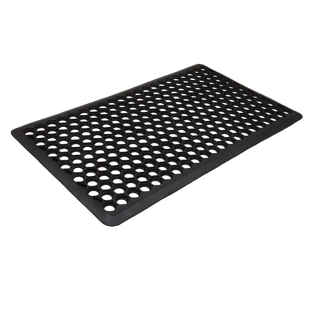 Our durable yet stylish beveled ring door mats are a useful addition for any entryway. These mats are strong enough to weather the elements and withstand daily tough wear and tear. The non-slip surface reduces the risk of injury, providing a safer experience for users. It also traps dirt and grime, preventing it from being tracked into your home. The beveled rings allow for better drainage to prevent bacterial growth. Easy to store and clean.