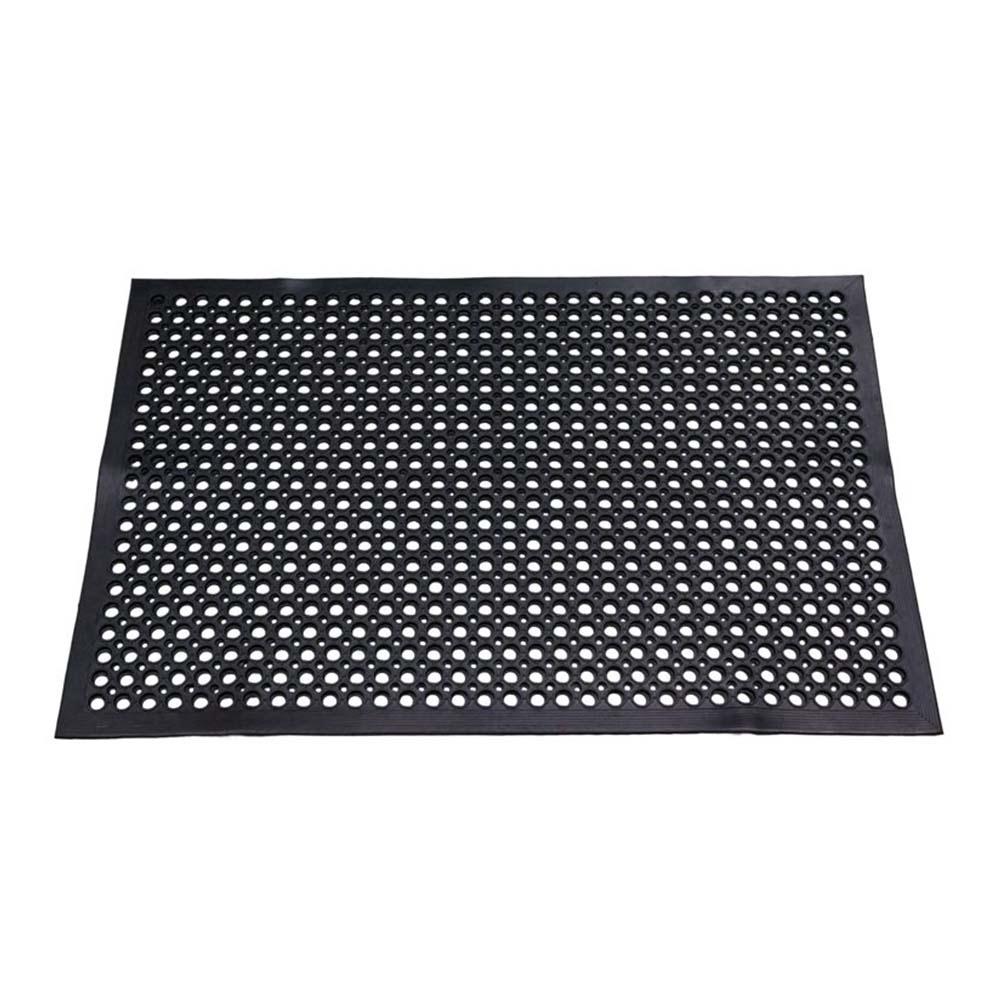 Our FLEXGARD® beveled ring mat can be used effectively in most industrial, workplace, and animal areas. The resilient design reduces fatigue and increases safety, keeping you more alert and less prone to accidents. The large drainage holes in the mat help maintain a clean, effective, non-slip surface for improved traction. These mats are suitable for wet and dry conditions and are designed to resist chemical damage.